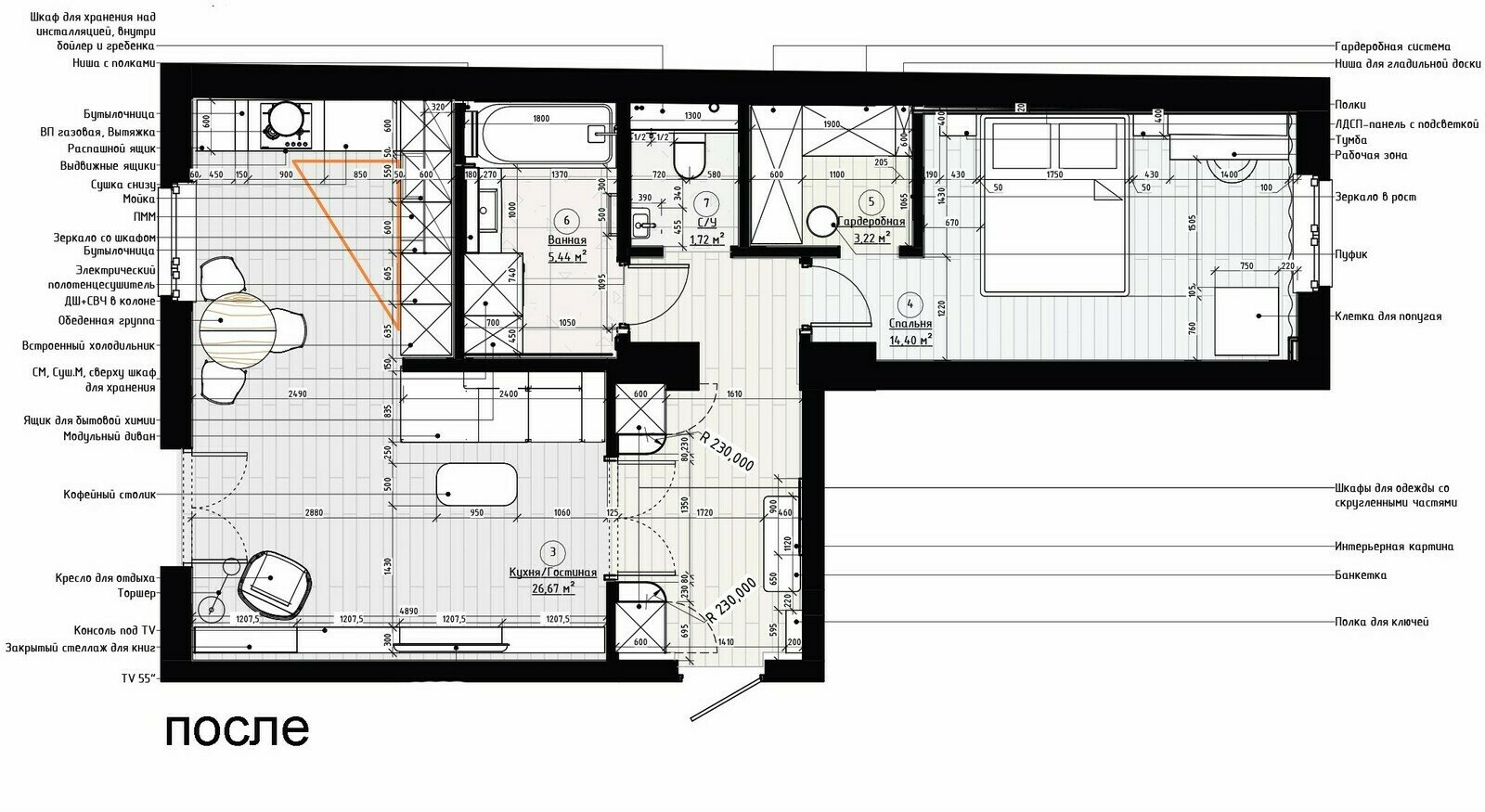 Фотография: Планировки в стиле , Современный, Эклектика, Квартира, Проект дня, Сталинка, 2 комнаты, 40-60 метров, Уфа, Джапанди, Юрий Воробьев – фото на INMYROOM