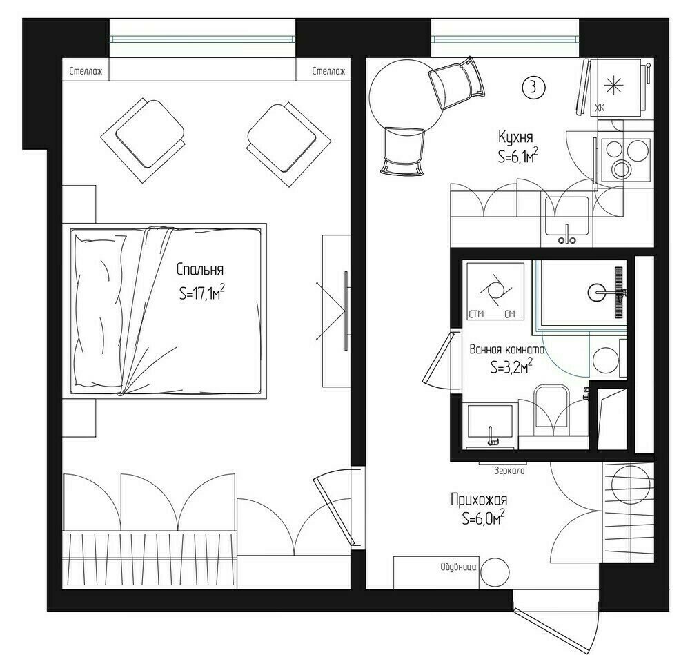 До и после: как советская панелька 32 м² превратилась в стильный интерьер с панорамным окном4,5