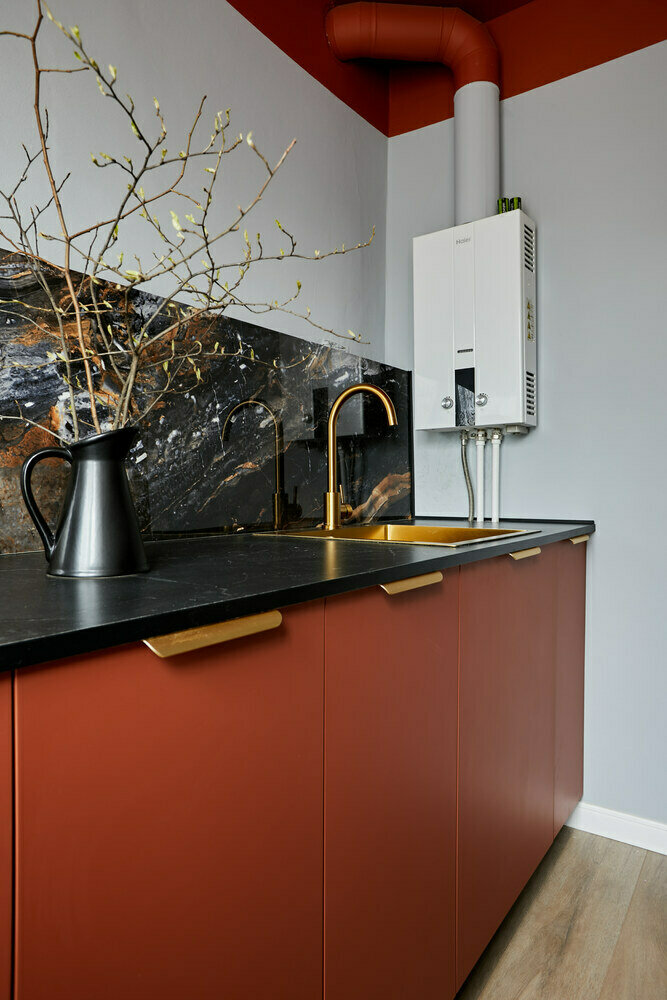 Фотография: Кухня и столовая в стиле Современный, Эклектика, Малогабаритная квартира, Квартира, Проект дня, Кирпичный дом, 1 комната, до 40 метров, Винтажный, Елена Вертий – фото на INMYROOM