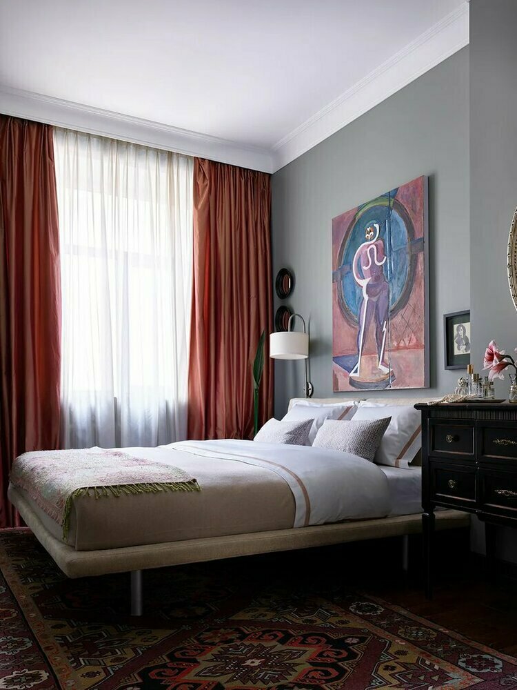 Фотография: Спальня в стиле Классический, Современный, Эклектика, Квартира, Проект дня, Москва, Кирпичный дом, 60-90 метров, Винтажный, Антонина Белинская – фото на INMYROOM