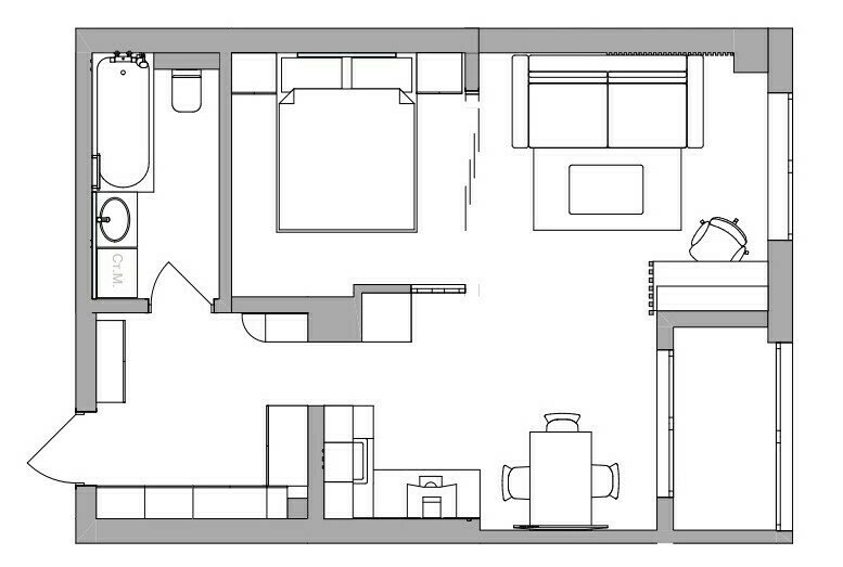Фотография: Планировки в стиле , Современный, Малогабаритная квартира, Квартира, Студия, Проект дня, Краснодар, 2 комнаты, 40-60 метров, Лилия Горожеева – фото на INMYROOM