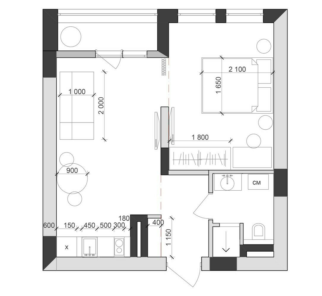 Контрастная однушка 42 м² в подарок для дочери-студенткиДизайн