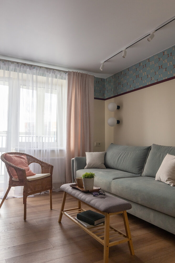 Фотография: Гостиная в стиле Современный, Малогабаритная квартира, Квартира, Студия, Проект дня, Беларусь, Монолитный дом, Блочный дом, до 40 метров, Могилев, Ольга Дубровская – фото на INMYROOM