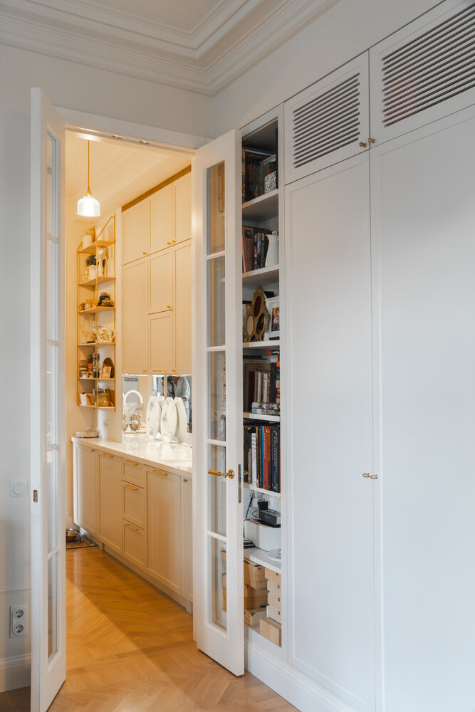 Фотография:  в стиле , Квартира, Интерьер комнат, Дизайн интерьера, Переделка, хранение вещей, организация хранения, хранение вещей в квартире, система хранения в квартире, хранение в квартире, идеи для хранения вещей, интерьер квартиры, Ольга Кондратова, Старый фонд, 60-90 метров, квартира в старом фонде, маленькая гардеробная, гардеробная в доходном доме, хранение в гардеробе, система хранения в старом фонде, идеи для хранения, Хранение в старом фонде – фото на INMYROOM