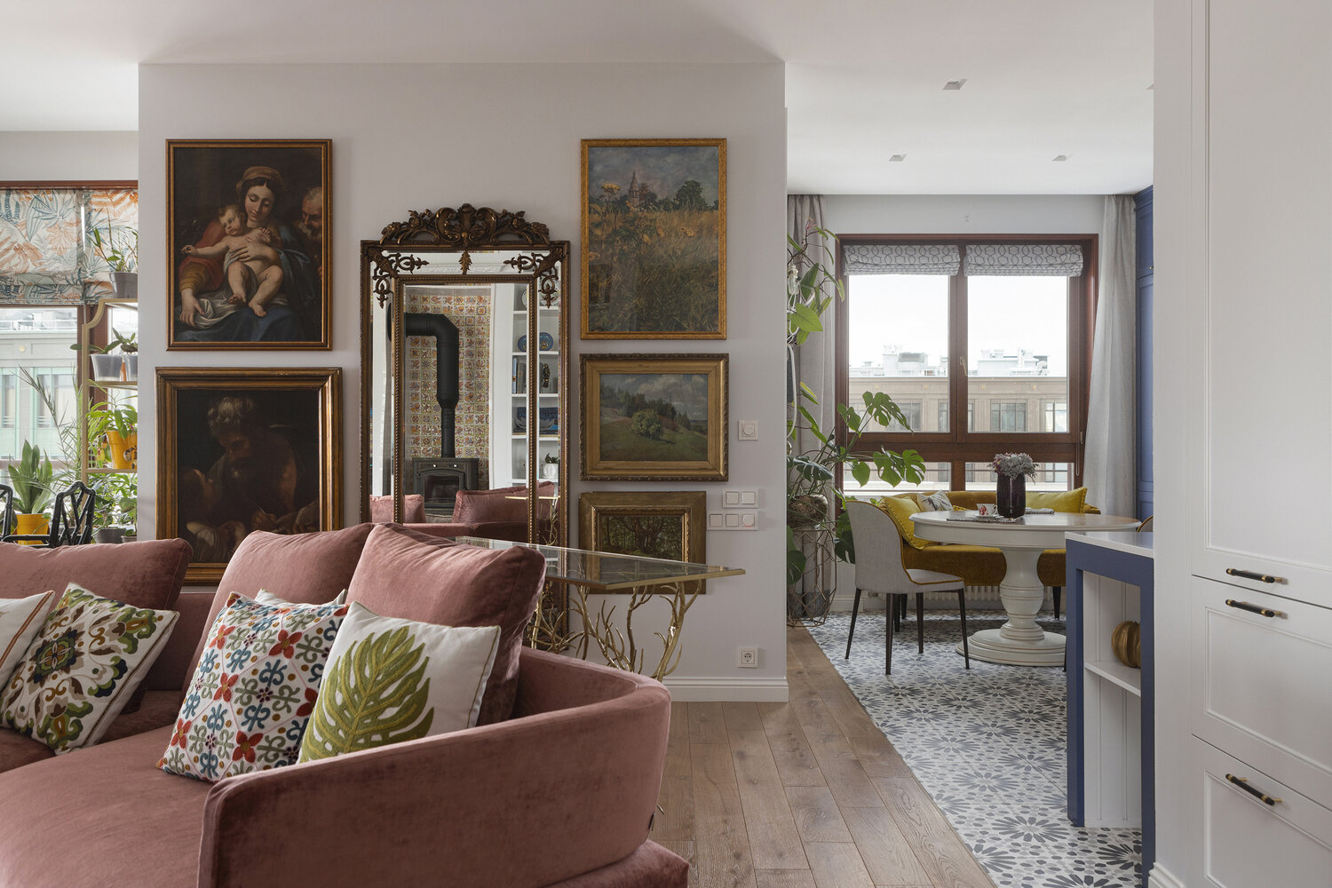 Большое зеркало — это дверь в потайную комнату, где спрятаны повседневные вещи, чемоданы, пылесос, разные бытовые мелочи.