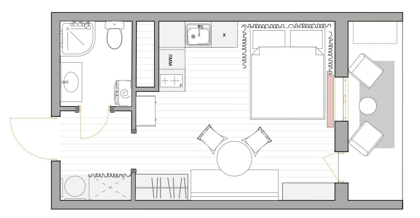 Петербургский шик и оттенки шоколада в мини-студии 24 м²Дизайн