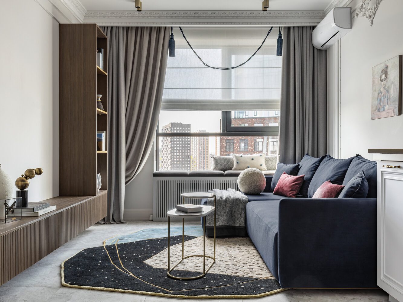 Фотография: Гостиная в стиле Классический, Современный, Квартира, Проект дня, Москва, Монолитный дом, 1 комната, 40-60 метров, Алина Мурашова – фото на INMYROOM