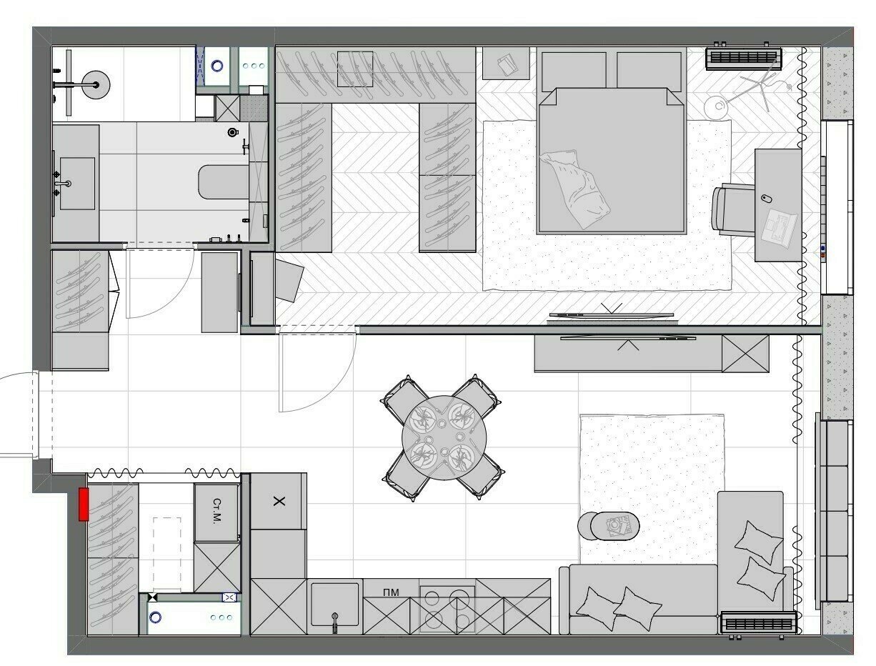 Фотография: Планировки в стиле , Квартира, Проект дня, Москва, Монолитный дом, 1 комната, 40-60 метров, Алина Мурашова – фото на INMYROOM