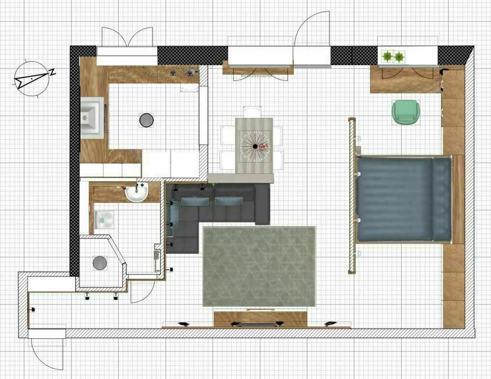 Фотография:  в стиле , Интерьер комнат, Дизайн интерьера, Переделка, интерьер квартиры для сдачи в аренду, интерьер квартиры под аренду, ремонт в хрущевке, интерьер квартиры, переделка хрущевки, Хрущевка, 40-60 метров, квартира в аренду, квартира в хрущевке, переделка типовой квартиры – фото на INMYROOM