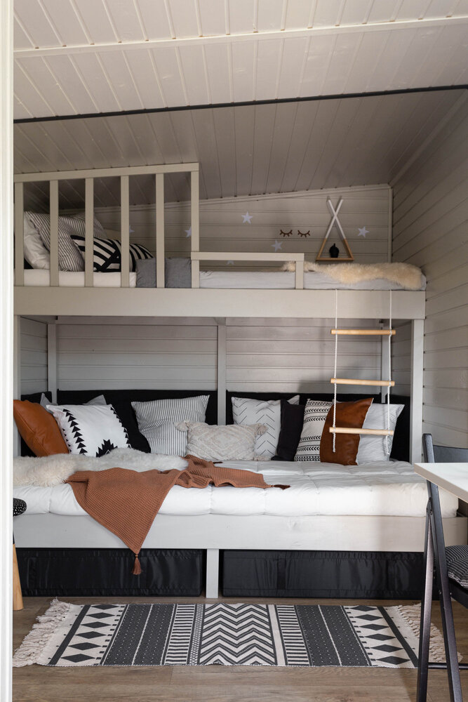 Фотография:  в стиле , Спальня, Интерьер комнат, Дизайн интерьера, Переделка, Дача, идеи для спальни, где поставить кровать в спальне, как оформить дачный дом, до 40 метров, строительство дача, Оригинальная подача, Дача летом, дача дизайн, дачный домик, интерьер дачного дома, дизайн в дачном домике, спальня в дачном домике, спальные места в дачном домике, система хранения на даче, спальные места для всей семьи – фото на INMYROOM