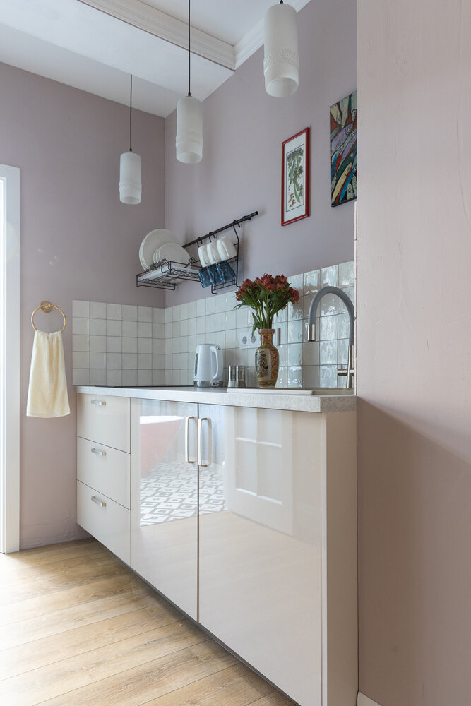 Фотография: Кухня и столовая в стиле Эклектика, Малогабаритная квартира, Квартира, Проект дня, 2 комнаты, до 40 метров, Коломна, современный с элементами классики и минимализмом, Арина Олесюк, Олеся Карпова – фото на INMYROOM