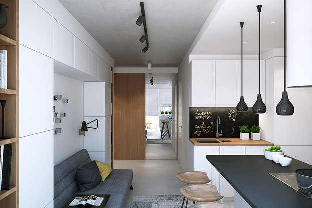 Фотография:  в стиле , Современный, Квартира, Россия, Проект недели, ИКЕА, современный интерьер, Geometrium, Cosmorelax, ИКЕА, как оформить однушку, Ленинграсдкая область, Denolux, Imola Ceramica, маркерная краска, Монолитный дом, 1 комната, 40-60 метров – фото на INMYROOM