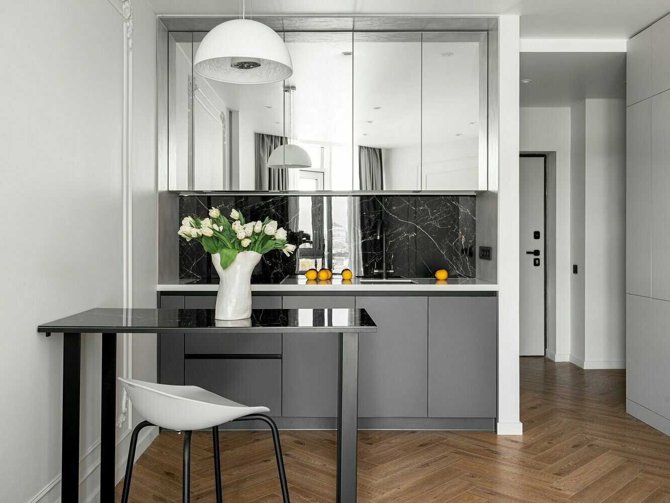 Фотография:  в стиле , Интерьер комнат, Дизайн интерьера, Советы, Зеркала, Зеркало, декор зеркалами, как визуально увеличить площадь малогабаритки, зеркала в спальни, зеркальный фартук, интерьер квартиры, Как сделать маленькую квартиру визуально больше, зеркало в декоре, зеркала в интерьере, зеркало в дизайне, увеличение комнаты с помощью зеркал, зеркала на кухне, зеркала в коридоре, зеркала в спальне – фото на INMYROOM