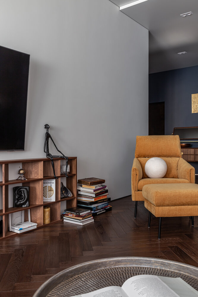 Фотография: Гостиная в стиле Современный, Эклектика, Квартира, Проект дня, Москва, 4 и больше, Более 90 метров, Монолитно-кирпичный, Анастасия Федоровская – фото на INMYROOM