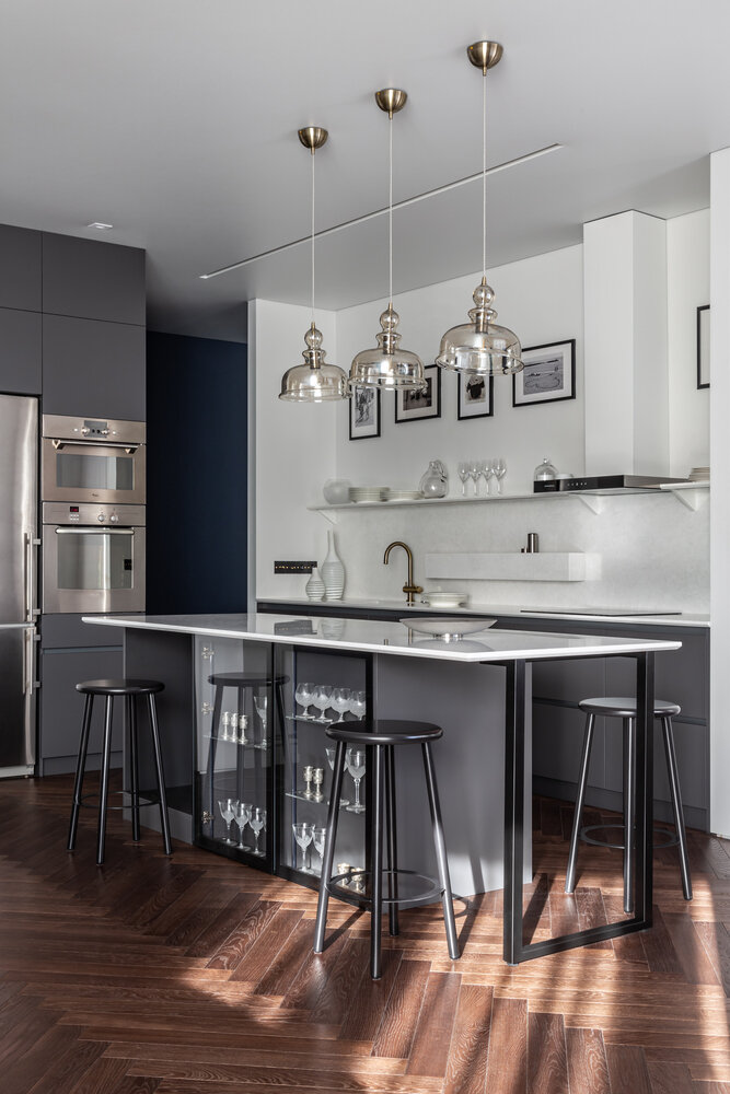 Фотография: Кухня и столовая в стиле Современный, Эклектика, Квартира, Проект дня, Москва, 4 и больше, Более 90 метров, Монолитно-кирпичный, Анастасия Федоровская – фото на INMYROOM