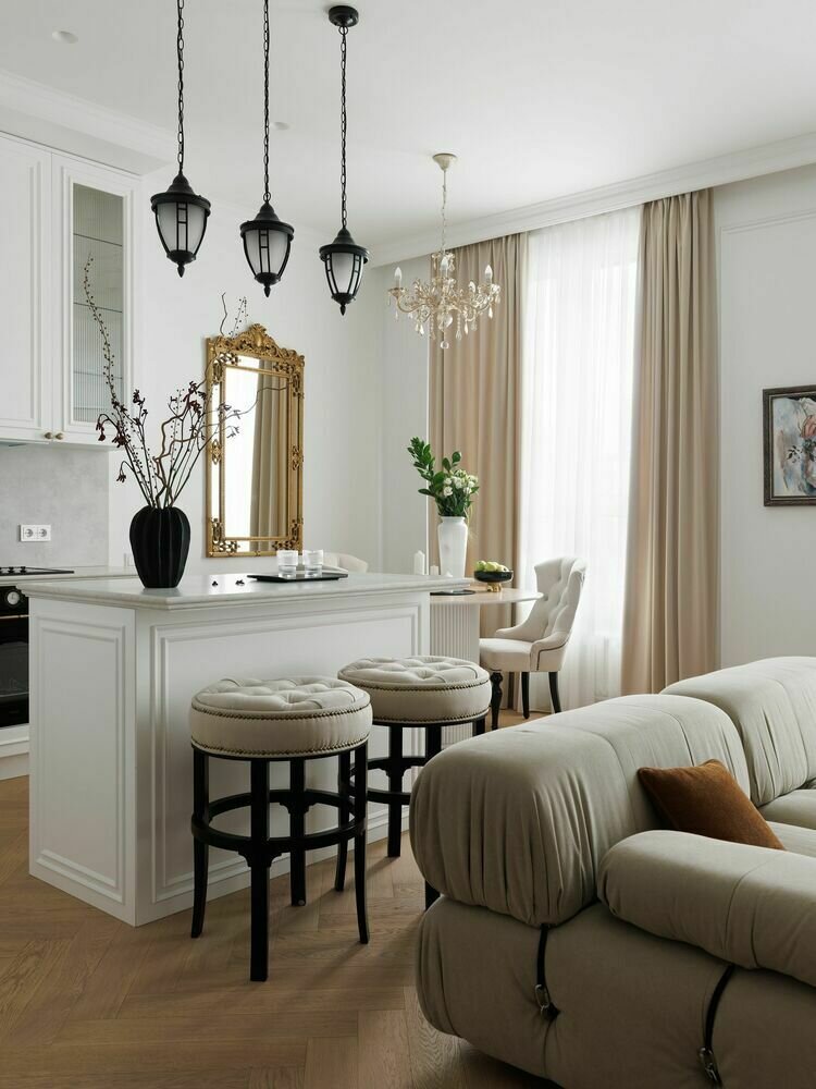 Монохромный интерьер с французским шармом в двушке 74 м²Дизайн