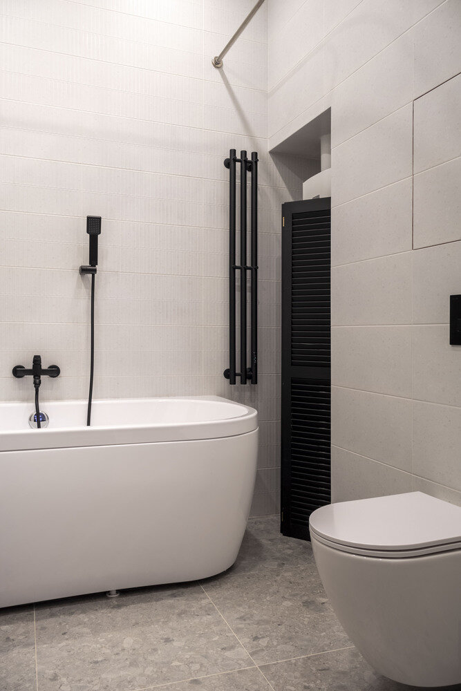 Фотография: Ванная в стиле Современный, Квартира, Проект дня, Санкт-Петербург, Кирпичный дом, 2 комнаты, 60-90 метров, современный с элементами минимализма и арт-деко, Постели Ковёр – фото на INMYROOM