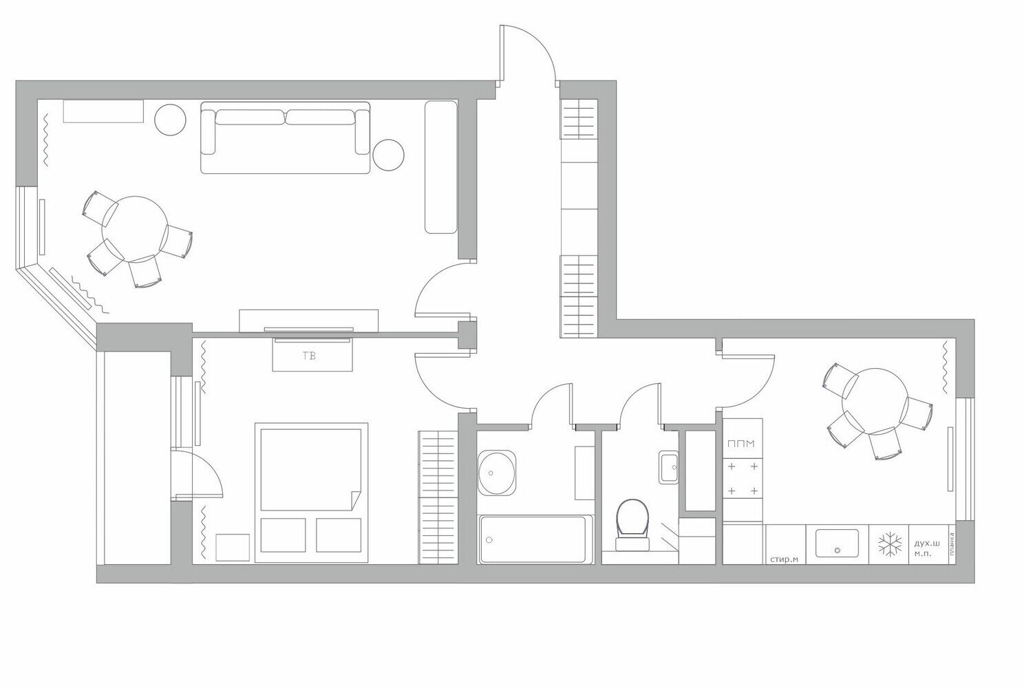 Фотография: Планировки в стиле , Квартира, Проект дня, Краснодар, Кирпичный дом, 2 комнаты, 60-90 метров, современный с элементами классики и роскоши, Яня Трубицына – фото на INMYROOM