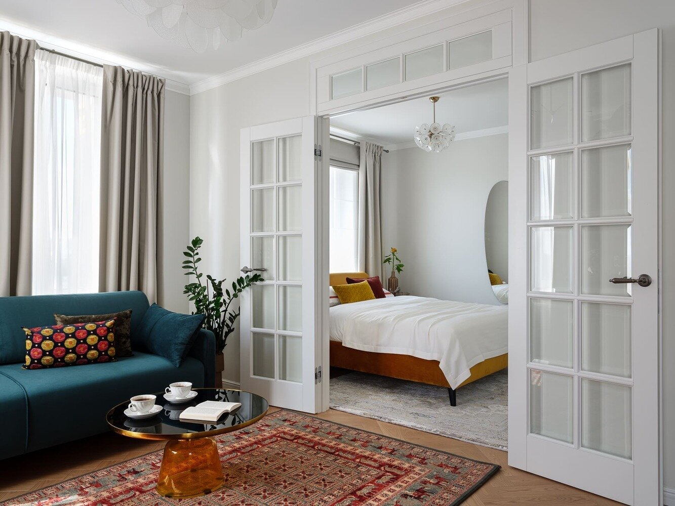 Фотография: Гостиная в стиле Современный, Эклектика, Малогабаритная квартира, Квартира, Проект дня, Москва, Монолитный дом, 2 комнаты, 40-60 метров, Маргарита Зенова, современный с элементами классики и минимализмом, М-Бюро, Александра Багрицевич – фото на INMYROOM