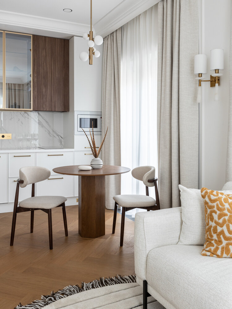 Фотография: Кухня и столовая в стиле Современный, Квартира, Проект дня, Москва, 2 комнаты, 40-60 метров, современный с элементами классики и роскоши – фото на INMYROOM