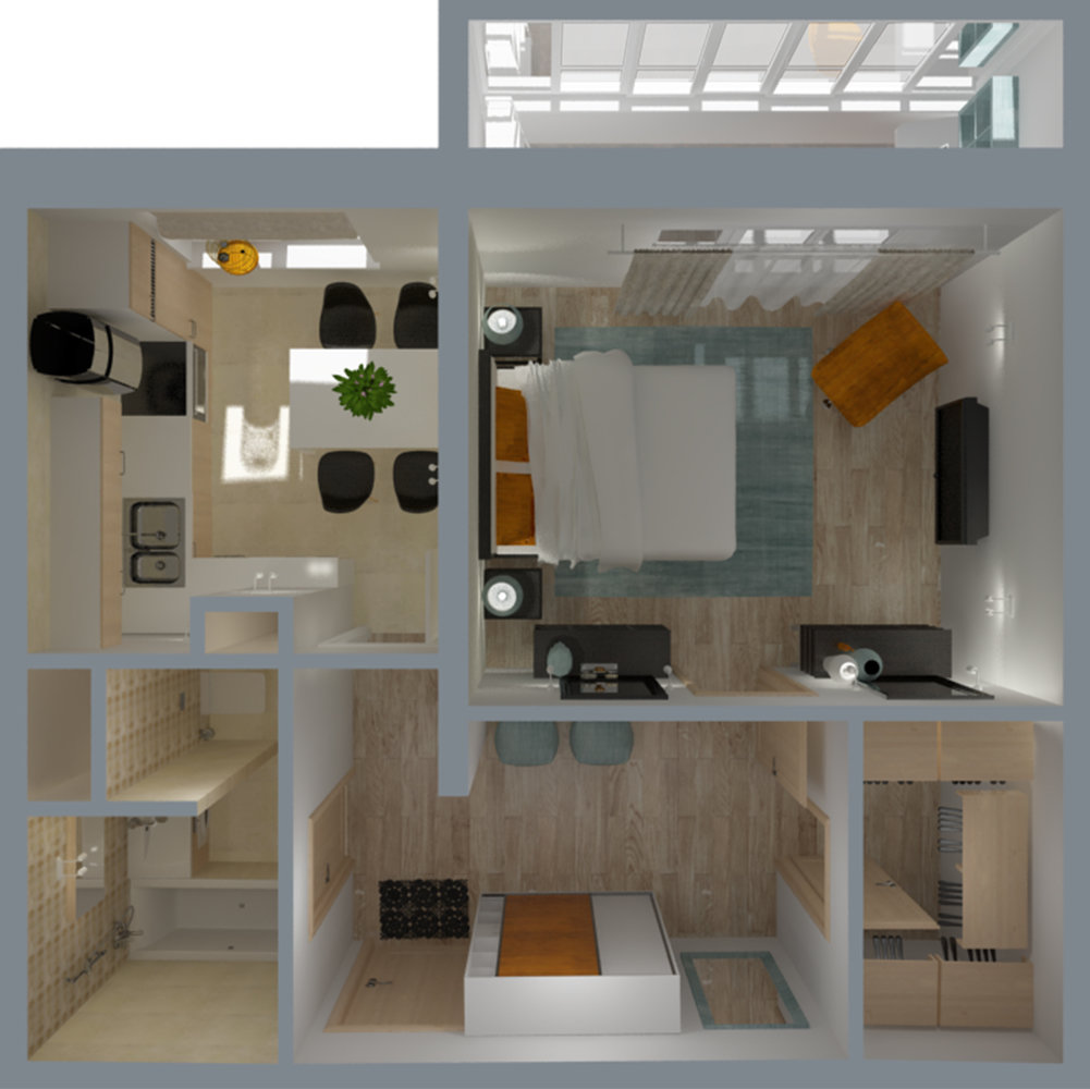 3 варианта обустройства однушки в панельном доме3,6