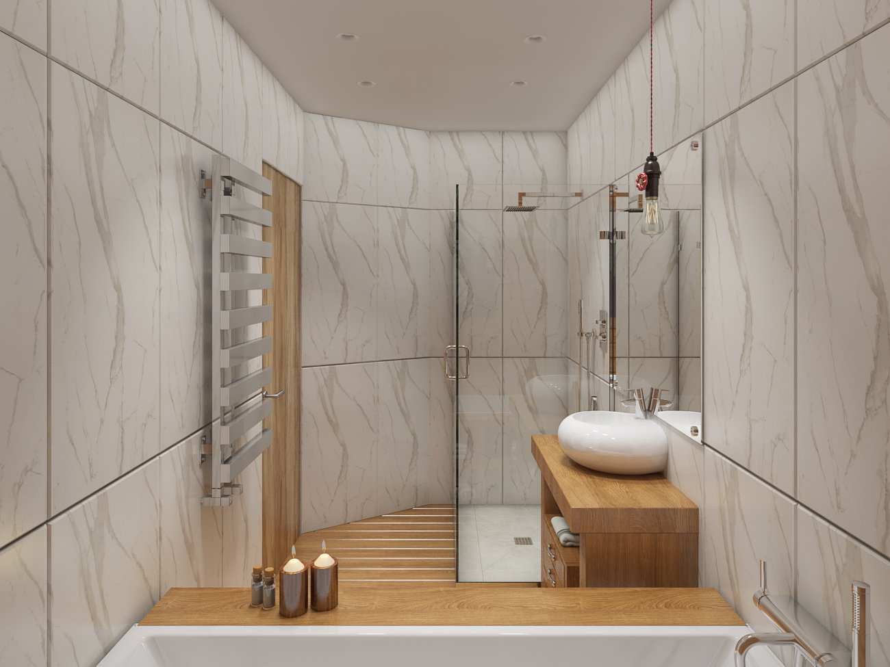 Фотография:  в стиле , Ванная, Белый, Проект недели, Москва, Коричневый, Atlas Concorde, Villeroy & Boch, санузел с душевой кабиной, как оформить санузел, Евгения Ермолаева, перепланировка санузла, тик в отделке санузла – фото на INMYROOM