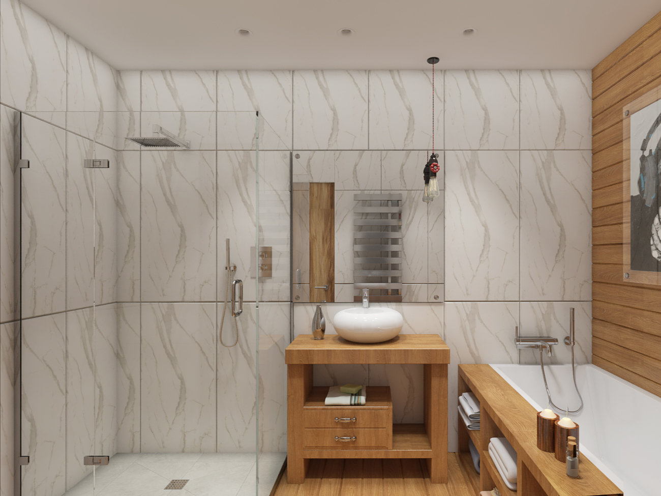 Фотография:  в стиле , Ванная, Белый, Проект недели, Москва, Коричневый, Atlas Concorde, Villeroy & Boch, санузел с душевой кабиной, как оформить санузел, Евгения Ермолаева, перепланировка санузла, тик в отделке санузла – фото на INMYROOM