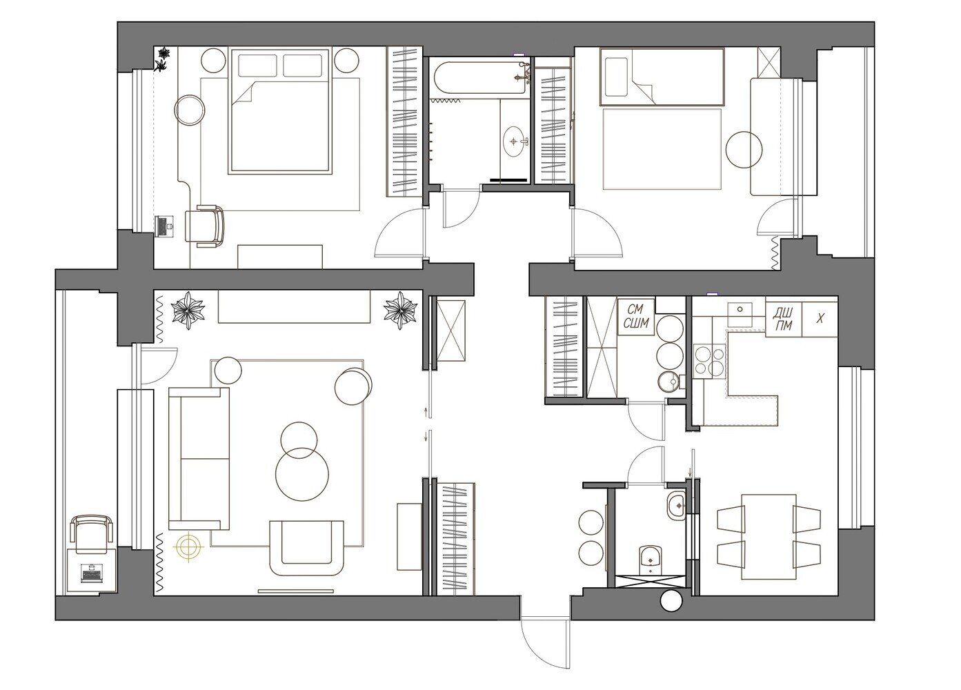 Яркая трешка 92 м² в минской брежневке для молодой семьиДизайн