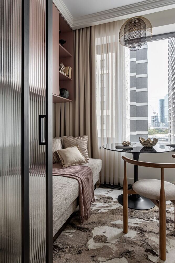 Фотография: Гостиная в стиле Современный, Малогабаритная квартира, Проект дня, Москва, 3 комнаты, Сара Михайлова, современный/минимализм, ЖК «Headliner» – фото на INMYROOM