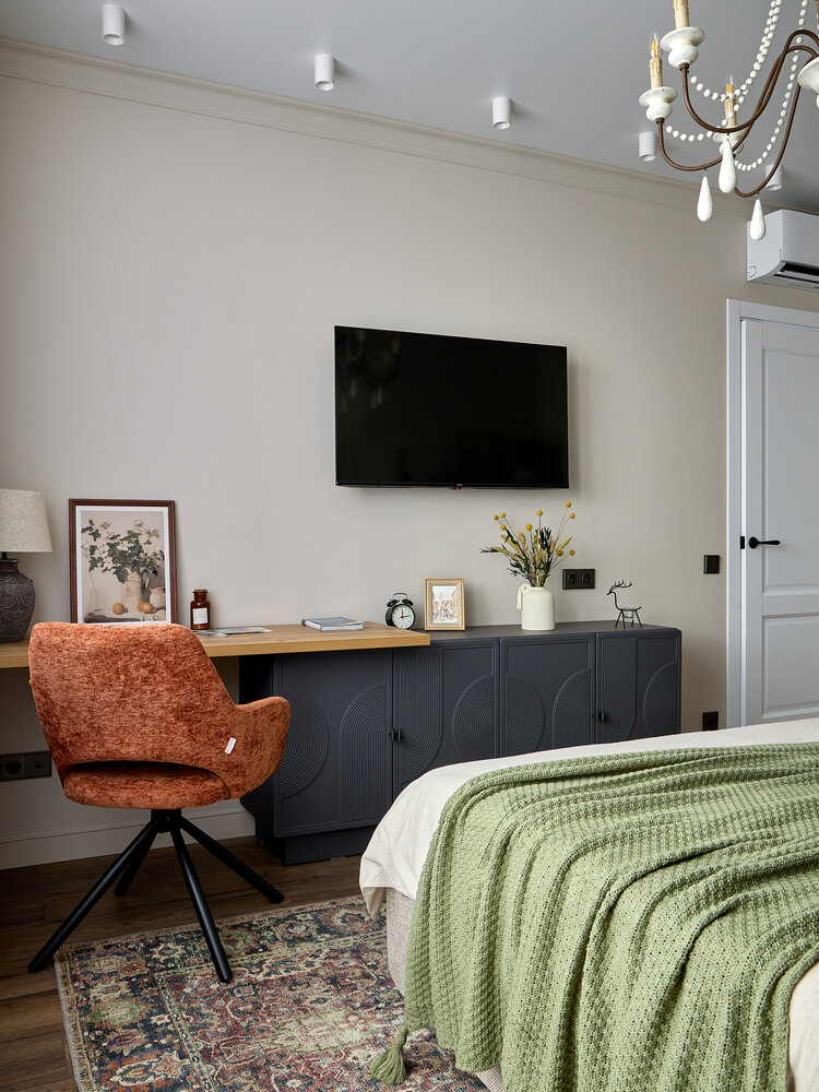 Фотография: Спальня в стиле Современный, Эклектика, Малогабаритная квартира, Квартира, Проект дня, Москва, П-44, Панельный дом, 1 комната, 40-60 метров, современный с элементами эклектики – фото на INMYROOM