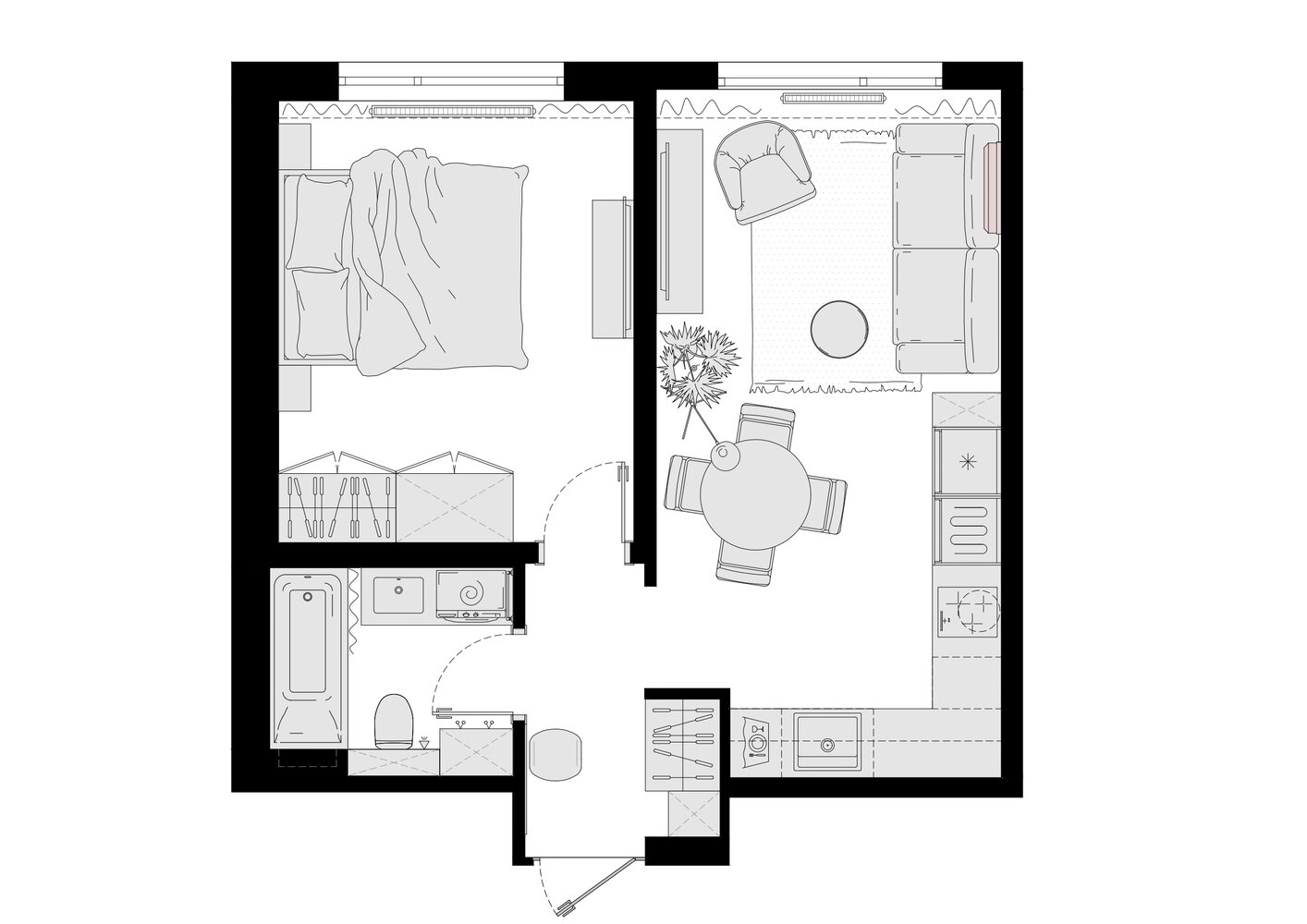 Фотография: Планировки в стиле , Современный, Малогабаритная квартира, Квартира, Проект дня, Москва, 2 комнаты, до 40 метров – фото на INMYROOM