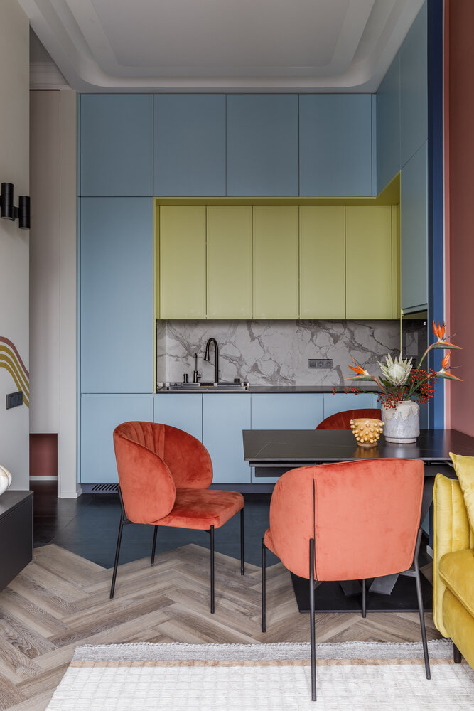 Красочный интерьер в трешке 57 м² с элементами поп-культуры 90-х, комиксов и культовых фильмовДизайн