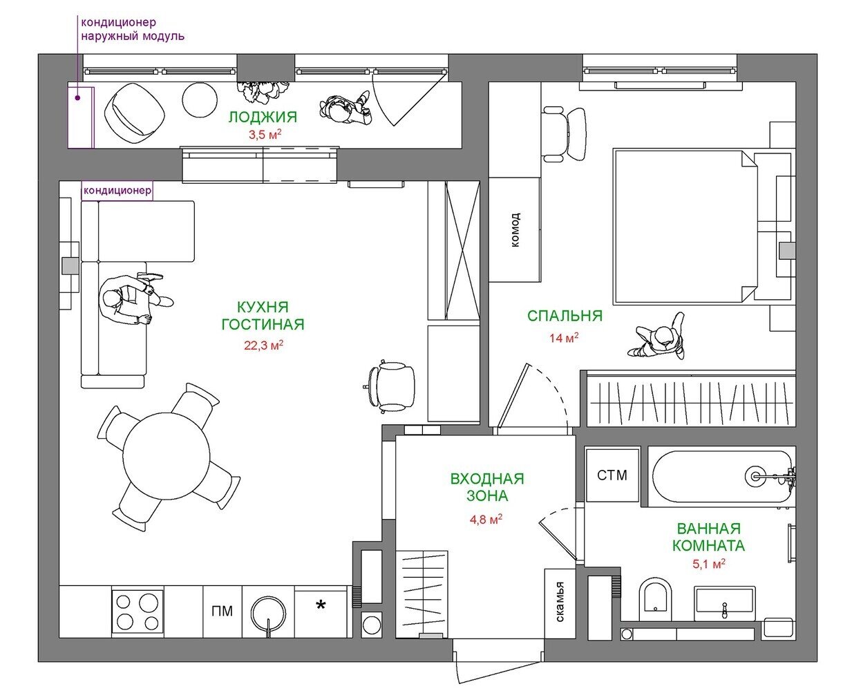 Фотография: Планировки в стиле , Квартира, Проект дня, Санкт-Петербург, 40-60 метров, минимализм, современный, Екатерина Бубнова – фото на INMYROOM
