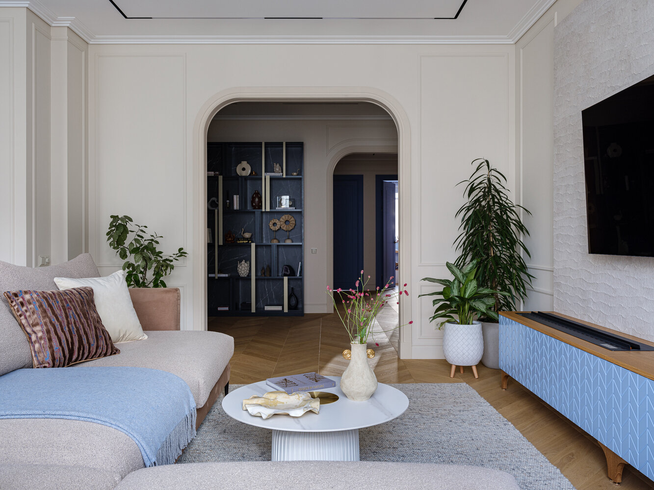 Фотография: Гостиная в стиле Современный, Квартира, Проект дня, Москва, 4 и больше, Более 90 метров, Индивидуальный проект, обновить интерьер, современные интерьеры, дизайн 2025 – фото на INMYROOM