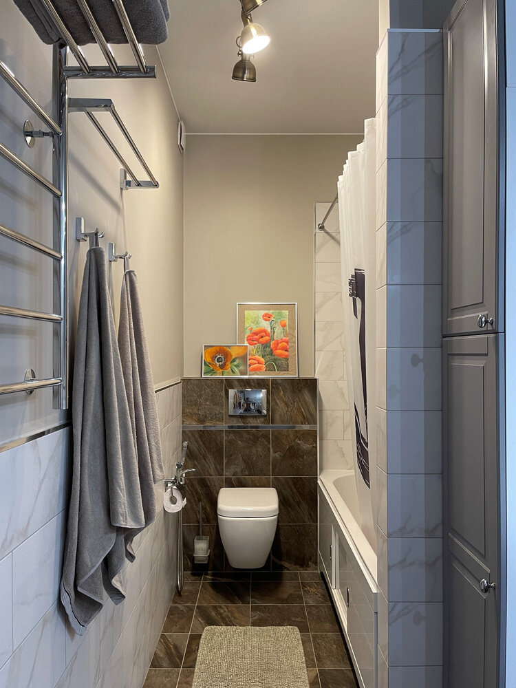 Фотография: Ванная в стиле Современный, Квартира, Проект дня, Московская область, Монолитный дом, 3 комнаты, 60-90 метров, Жуковский, Мария Чикунова – фото на INMYROOM