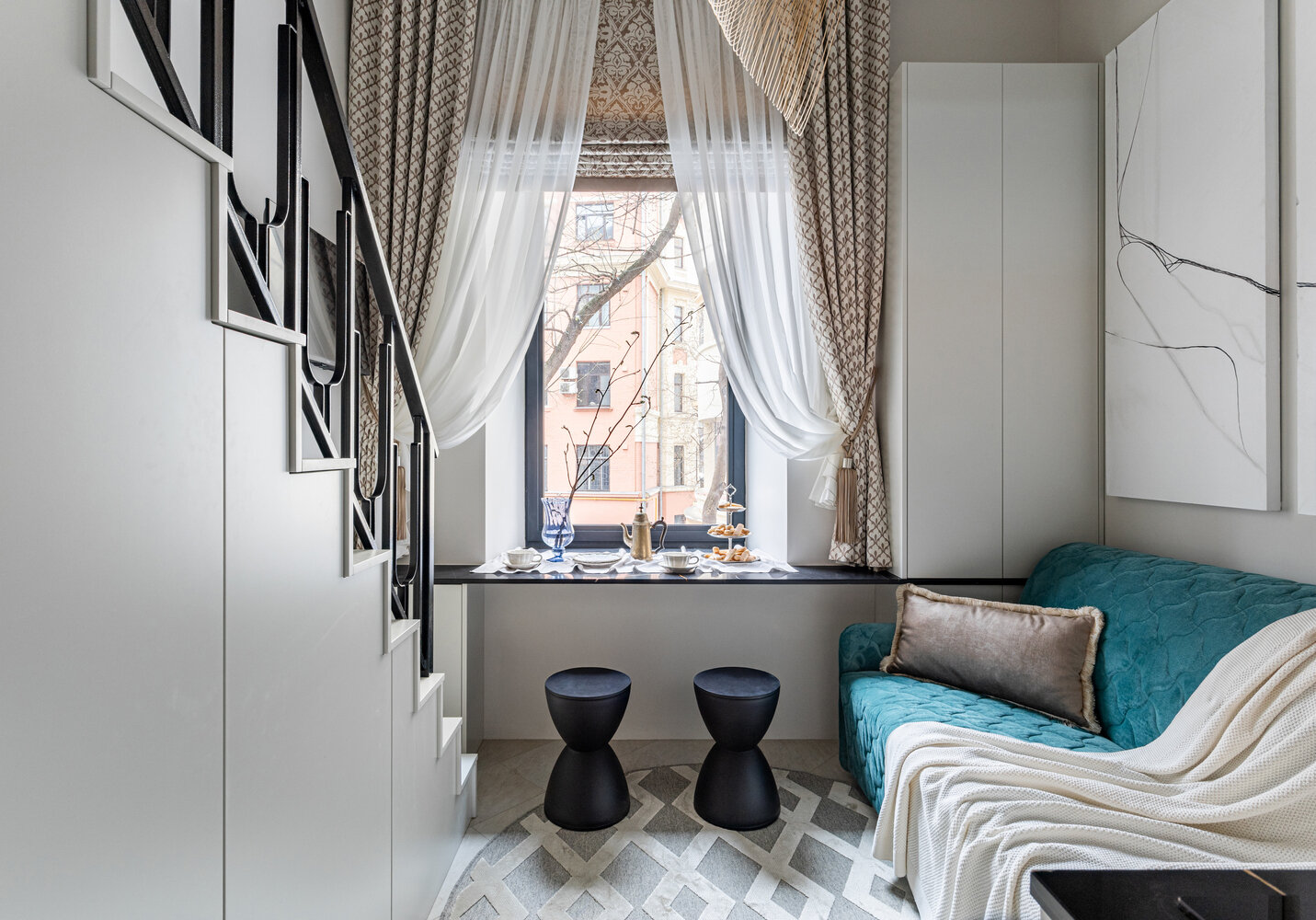 Фотография: Гостиная в стиле Современный, Малогабаритная квартира, Квартира, Студия, Проект дня, Москва, Кирпичный дом, до 40 метров, современный с элементами классики и минимализмом, Варвара Головко – фото на INMYROOM