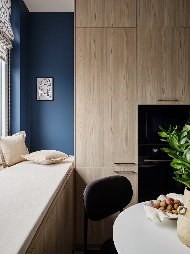 Фотография: Кухня и столовая в стиле Современный, Малогабаритная квартира, Квартира, Проект дня, Москва, Монолитный дом, 2 комнаты, до 40 метров, Яна Гафарова – фото на INMYROOM
