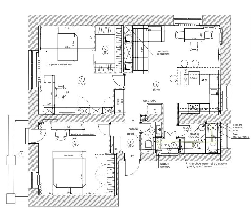Перекроили планировку и обустроили светлую трешку 81 м² в сталинке с элементами mid-centuryДизайн