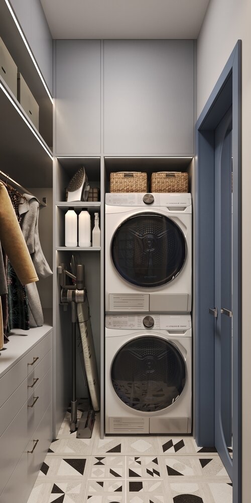 Фотография: Гардеробная в стиле Современный, Квартира, Проект дня, Москва, Монолитный дом, 40-60 метров, ЖК «Holland Park», Гера Остин, Анна Лаковская – фото на INMYROOM