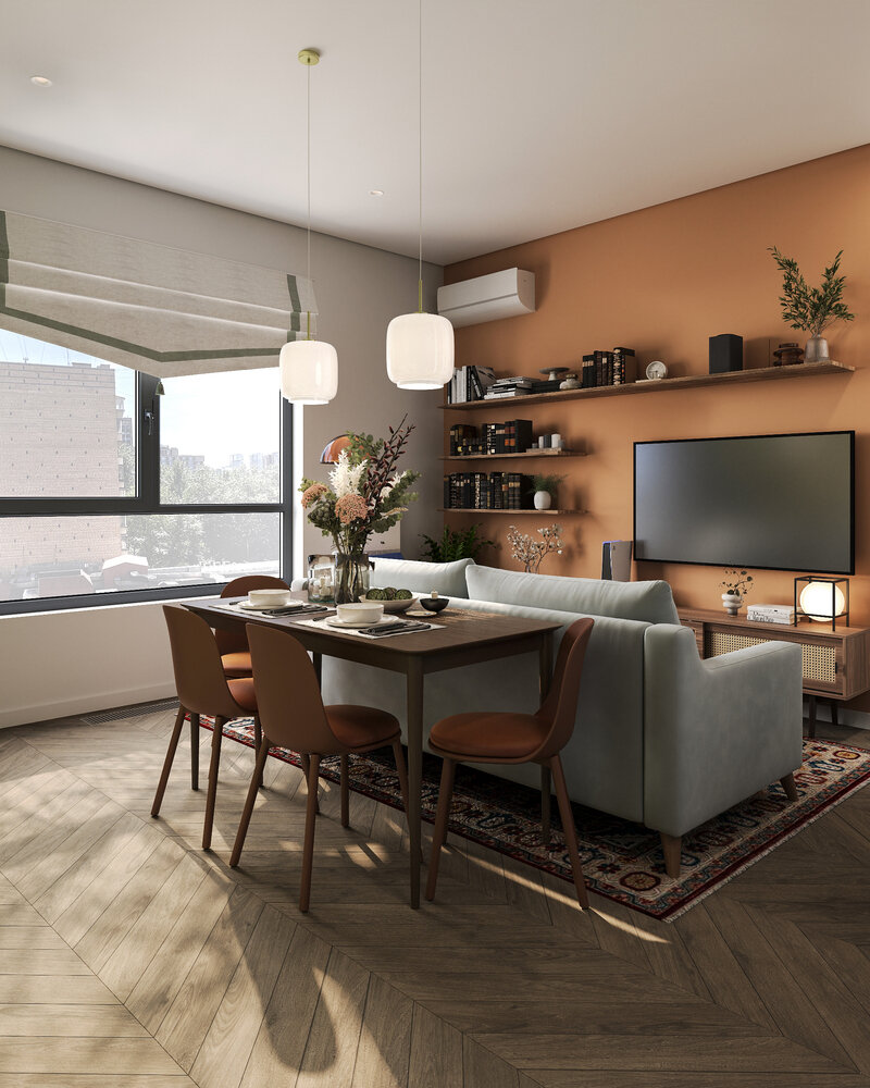Фотография: Гостиная в стиле Современный, Эклектика, Квартира, Проект дня, Москва, Монолитный дом, 40-60 метров, ЖК «Holland Park», Гера Остин, Анна Лаковская – фото на INMYROOM