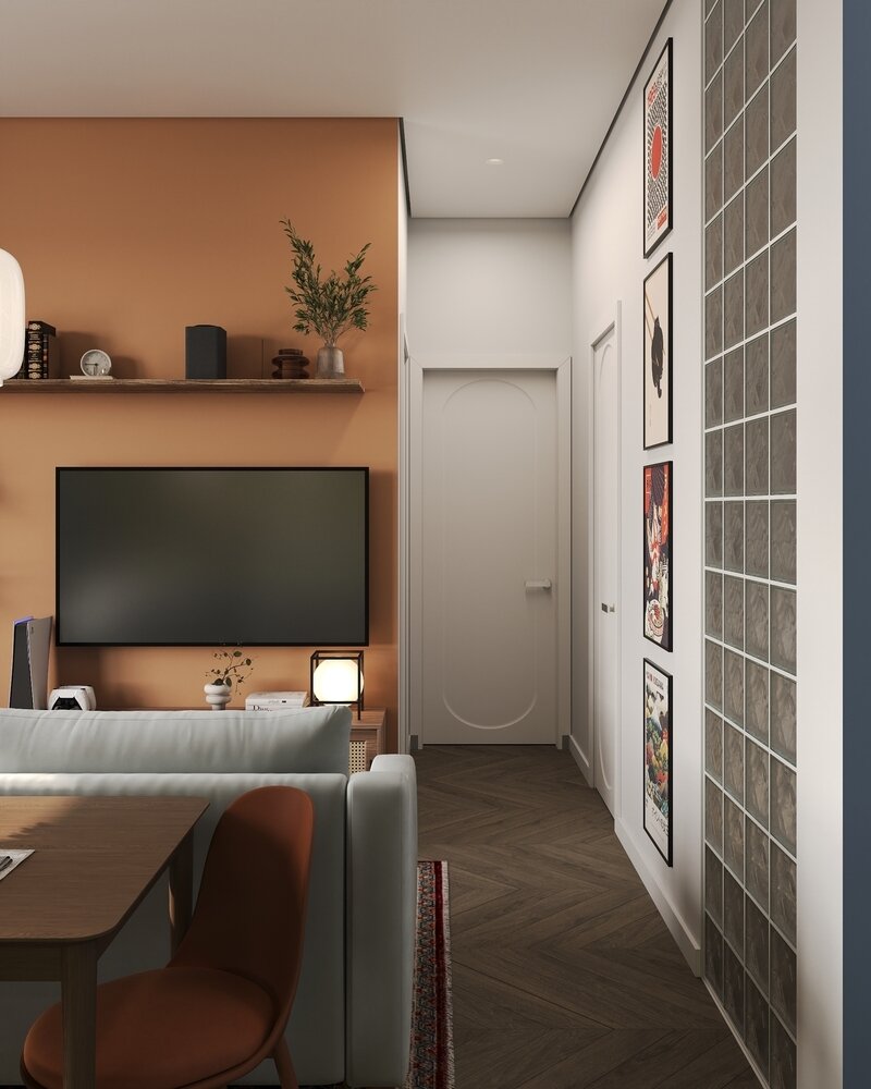Фотография: Гостиная в стиле Современный, Эклектика, Квартира, Проект дня, Москва, Монолитный дом, 40-60 метров, ЖК «Holland Park», Гера Остин, Анна Лаковская – фото на INMYROOM