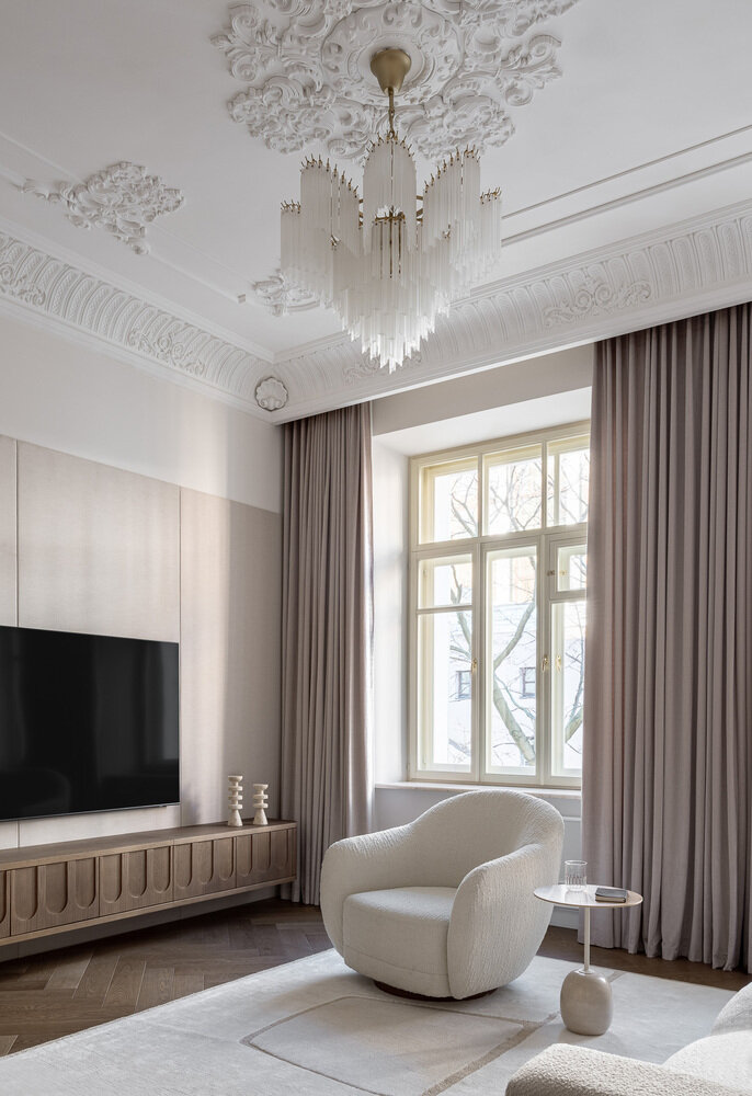 Фотография: Гостиная в стиле Классический, Современный, Эклектика, Квартира, Проект дня, Москва, Анна Макеева, Кирпичный дом, 3 комнаты, Более 90 метров, современный с элементами классики и роскоши – фото на INMYROOM