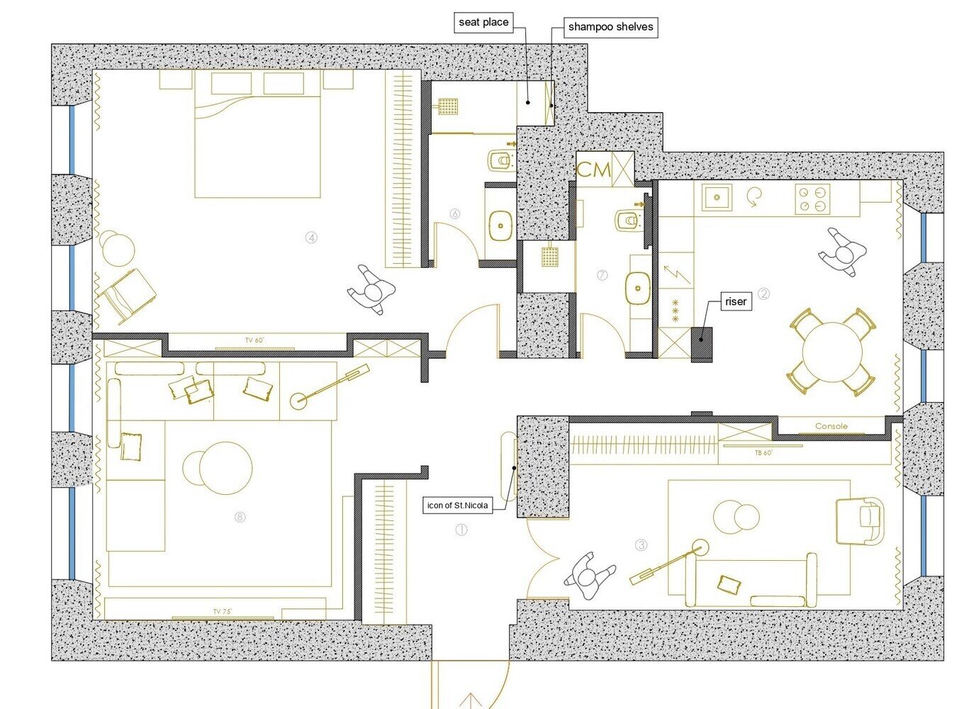 Фотография: Планировки в стиле , Квартира, Проект дня, Москва, Анна Макеева, Кирпичный дом, 3 комнаты, Более 90 метров, современный с элементами классики и роскоши – фото на INMYROOM