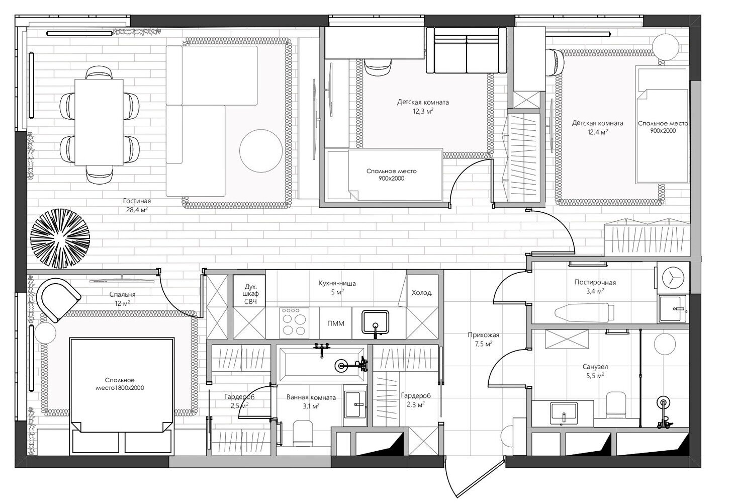 Цветные стены, фартук из стеклоблоков, авторское искусство — смелые решения в квартире 94 м²Дизайн