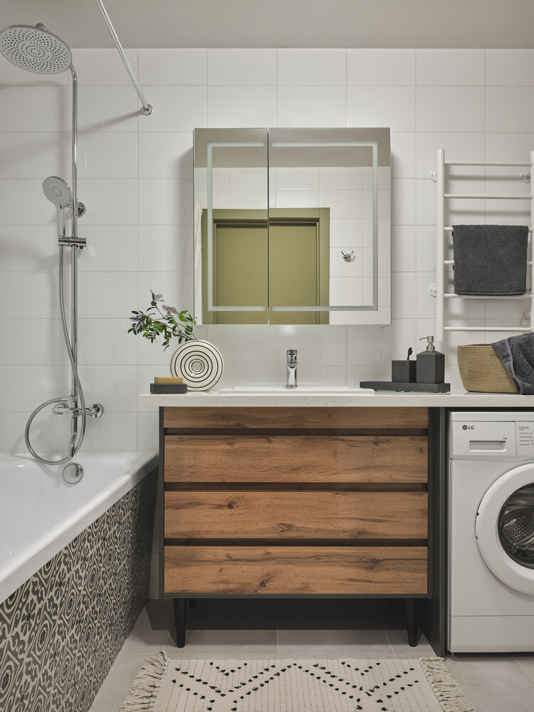 Фотография: Ванная в стиле Современный, Малогабаритная квартира, Квартира, Проект дня, Москва, 1 комната, 40-60 метров, Анна Данилова, современный с элементами эклектики, ЖК «Матвеевский парк» – фото на INMYROOM