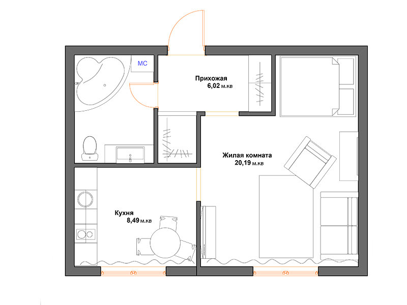 Фотография: Планировки в стиле , Перепланировка, Дарья Дубкова, П-30, обустройство однокомнатной квартиры в П-30, дизайн типовой однушки – фото на INMYROOM