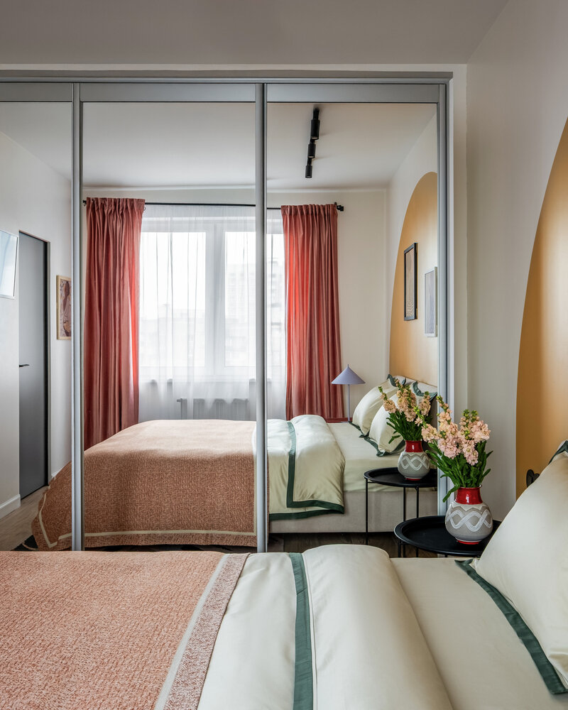 Фотография: Спальня в стиле Современный, Эклектика, Скандинавский, Квартира, Проект дня, Москва, Монолитный дом, 2 комнаты, 40-60 метров, Мия Грабчак – фото на INMYROOM