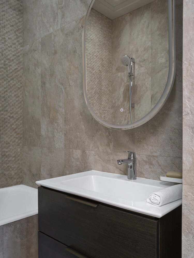 Фотография: Ванная в стиле Современный, Эклектика, Квартира, Проект дня, Москва, 3 комнаты, 60-90 метров, Анна Тарасова, Варвара Пономарева – фото на INMYROOM