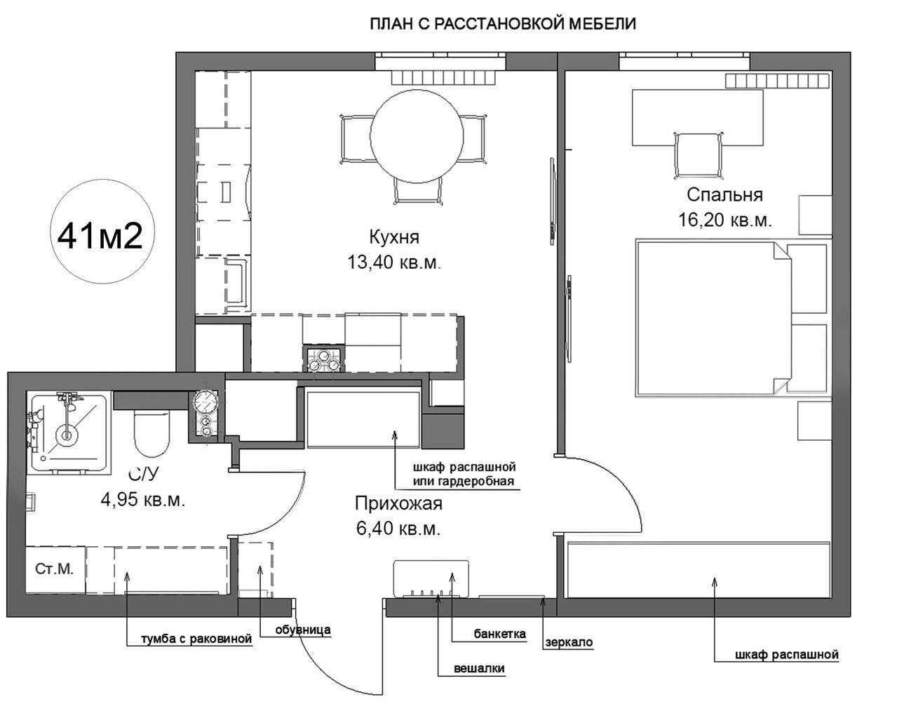 Фотография: Планировки в стиле , Современный, Малогабаритная квартира, Квартира, Проект дня, Санкт-Петербург, 1 комната, 40-60 метров, Александра Войнова – фото на INMYROOM