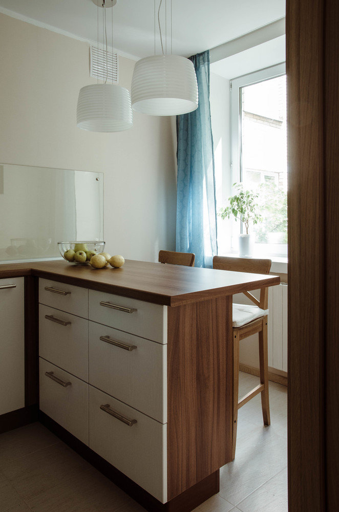 Фотография:  в стиле , Эклектика, Квартира, Eames, Белый, Минимализм, Проект недели, Москва, Бежевый, Перегородка, Коричневый, Барная стойка, ИКЕА, маленькая гостиная, идеи для маленькой гостиной, перепланировка двухкомнатной квартиры, идеи для маленькой кухни, Eijffinger, Kerama Marazzi, спальня-гостиная, перепланировка двушки, маленькая кухня, идеи планировки маленькой кухни, Lussole, малометражная кухня, планировка маленькой кухни, Khroma, Odeon, барная стойка на кухне, дизайн маленькой комнаты, Favourite, Egger, Территория кухни, Anderssen, Наталья Сытенкова, дом серии II-29, Армата – фото на INMYROOM